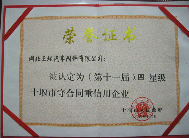 守合同重信用荣誉证书