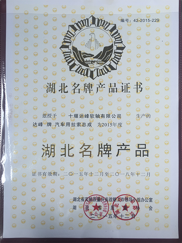 湖北名牌产品证书2015年